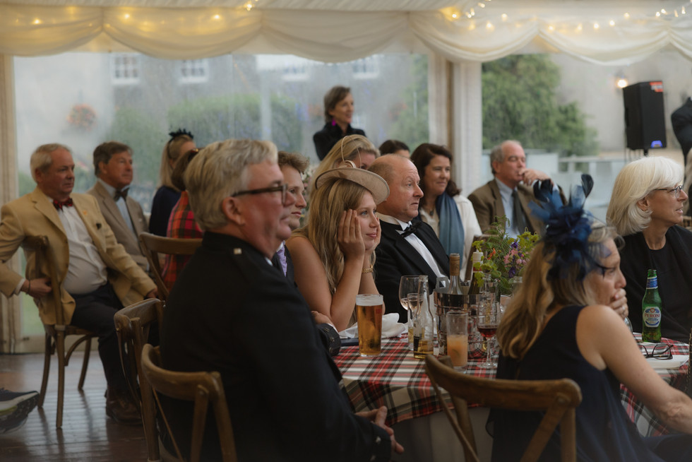 After the ceremony, guests gathered beneath a beautifully lit marquee provided by Finesse Marquees. The evening started with a hearty buffet, continued with heartwarming words from their beloved ones (there were of course some funny and hot inside jokes as well) during the speeches. The 'cherry on top' was the dramatic (and delightfully Scottish) cutting of the cake using a ceremonial sword, setting the tone for a night to remember. Live performances from local bands brought incredible energy, while heartfelt songs from close friends made the celebration even more personal.