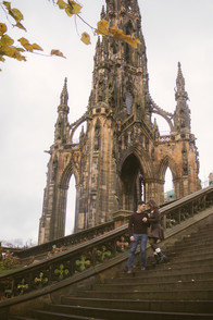 We began our journey in Princes Street Gardens, where the season’s colors made the setting even more enchanting. The trees, dressed in shades of amber and deep brown, framed the towering Scott Monument beautifully. Julia and Nil strolled hand in hand along the paths, their easy laughter blending with the gentle rustle of leaves underfoot.